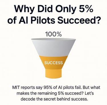 Blog post descWhile everyone fixates on the 95% failure rate in AI pilots (MIT report), the real lesson lies in understanding why the successful 5% deliver transformational results. As an AI consultant, I’ve distilled the winning formula into four key pillarsription.